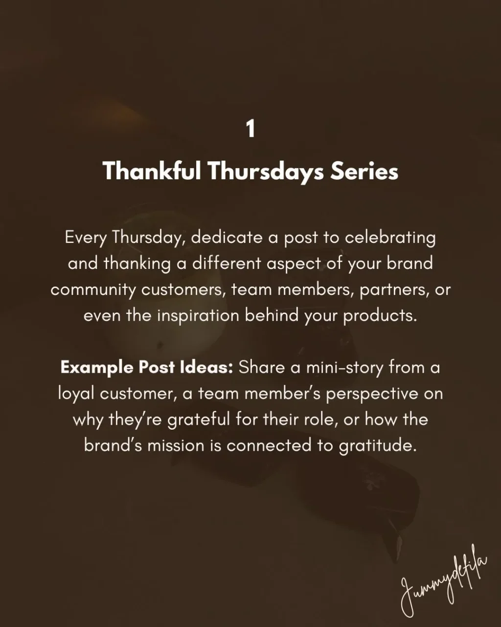 Example Post Ideas: Share a mini-story from a loyal customer, a team member’s perspective on why they’re grateful for their role, or how the brand’s mission is connected to gratitude.