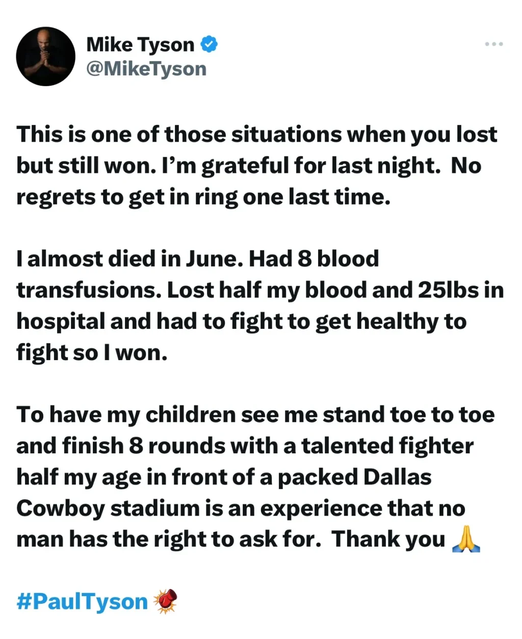 What moved me most was Tyson’s pride in showing his kids that even in defeat, he could fight with everything he had. He didn’t just step into the ring for himself, he did it to inspire them.